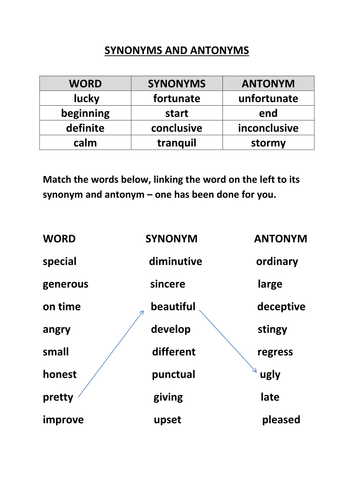 Synonyms and Antonyms interactive and downloadable worksheet.